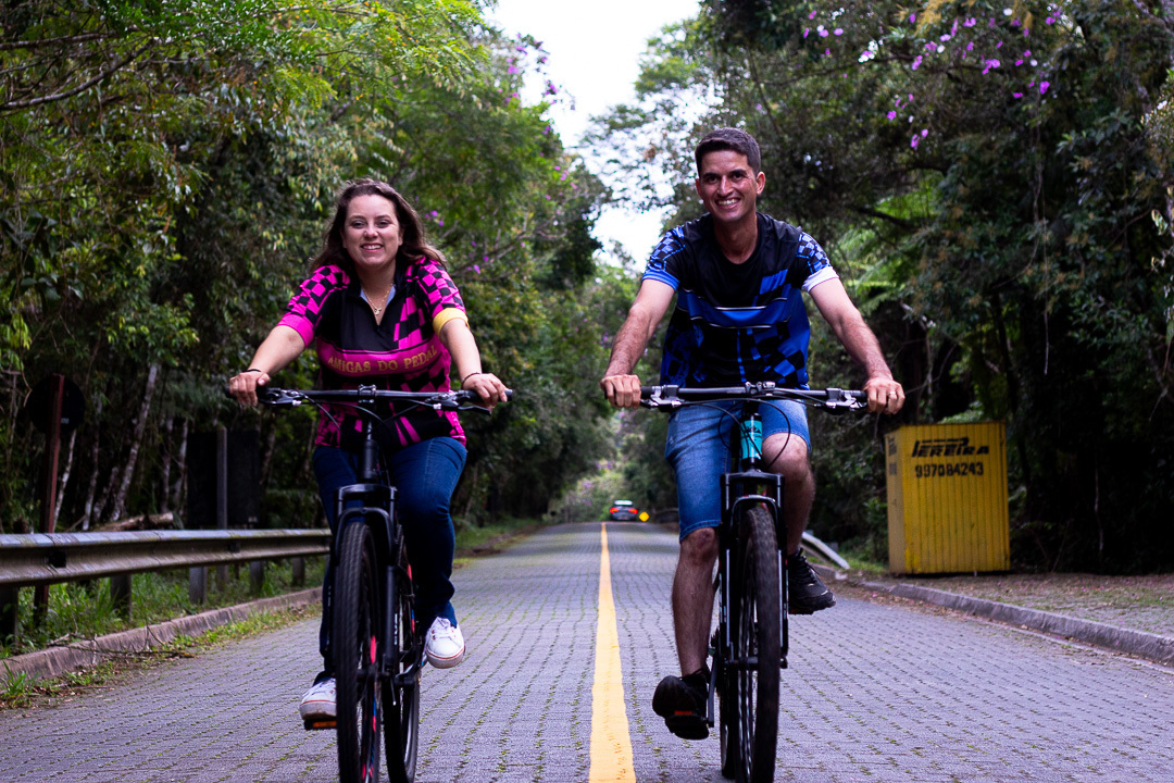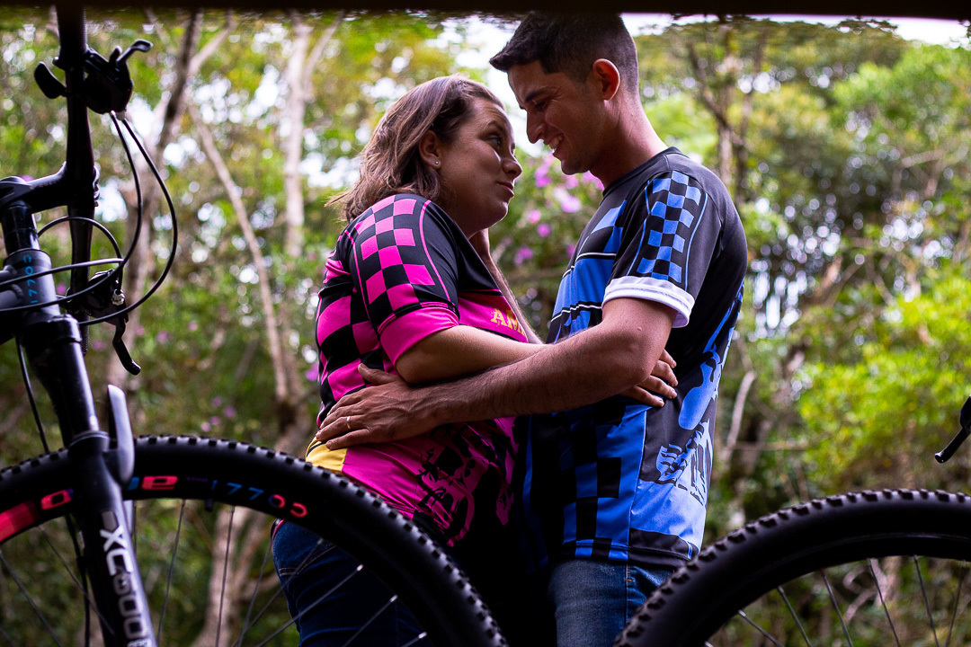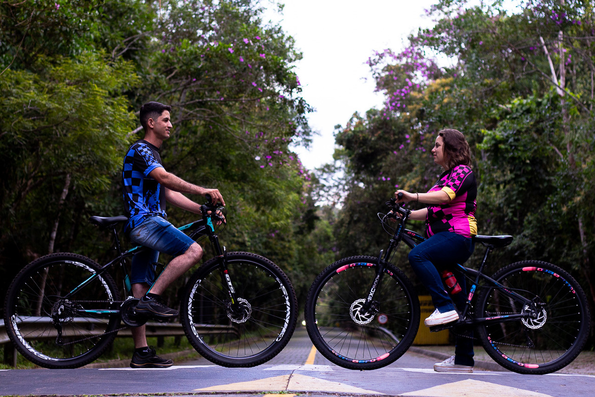 Ensaio de casal realizado no Parque Estadual Carlos Botelho, em final de tarde para mostrar a conexão existente nesse casal, e mostrar um pouco mais sobre eles que amam estar juntos e além de tudo amam pedalar.