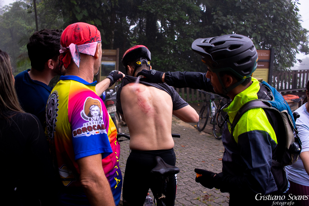 Ao final da jornada, o grupo de ciclistas chegou ao topo da serra e foi recompensado com uma vista incrível da paisagem ao redor. O ciclista machucado foi prontamente atendido e recebeu os cuidados necessários.